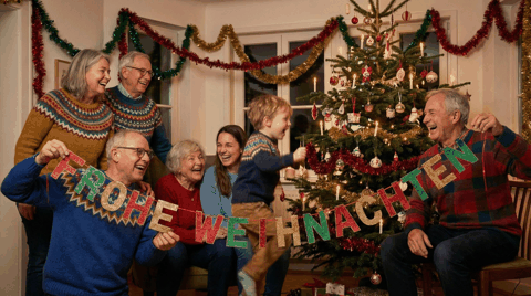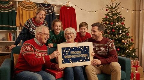 - Familiäre Grüße: Wähle warme, traditionelle Motive (Baum, Kerzen, herzliche Schriftzüge).