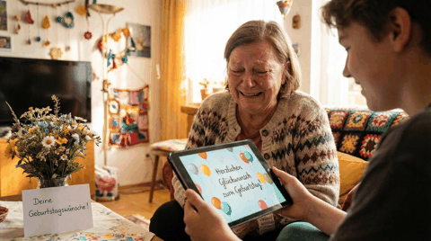 - Eltern oder Großeltern: Warmes, emotionales Motiv mit großer Schrift und hoher Lesbarkeit.
