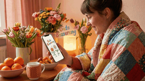 - Kreative Illustrationen: Minimalistische, grafische GIFs mit kurzer Botschaft wie „Gute Besserung!“