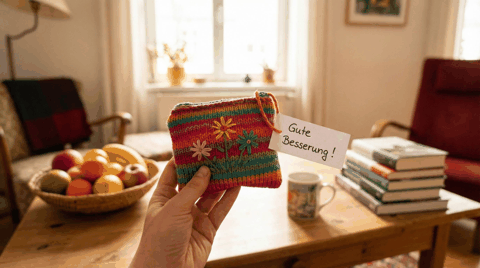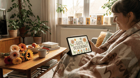 | Kurze Erkältung | Heiße Tee-Tasse, Wärmflasche | Gemütlich, beruhigend | klein, WhatsApp-optimiert |