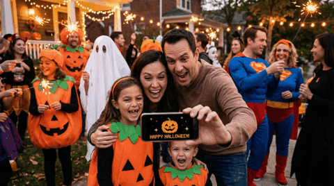 - Animierte Grüße: Kurz, fokussiert, mit klarer Botschaft wie “Happy Halloween”.